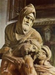 En la imagen verán la ‘Pietà del Duomo’ de Miguel Ángel Buonarroti. Nicodemo, un autorretrato del artista, llevando en brazos al Cristo muerto, el descendimiento de la cruz.