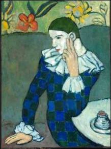 (1) Imagen: Arlequín sentado en un café, 1923. A Pablo Picasso le gustaba representarse a sí mismo como un arlequín, figura circense de colores, siempre cambiante.