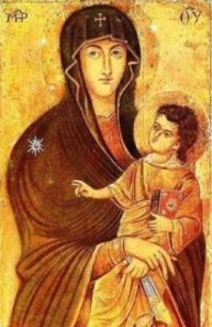 – Icono bizantino atribuido a los primeros cristianos, ahora en Santa María la Mayor de Roma. La imagen llegó a Roma en el año 590. Fue restaurada por los Museos Vaticanos en 2018.