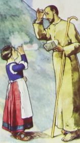 * Imagen: Ignacio de Loyola, su nueva vestimenta de peregrino y catequista, explicando a una niña cómo hacer la señal de la cruz. Pintura sobre azulejo, fragmento. Ermita de la Magdalena, Azpeitia.