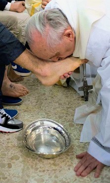 La foto que les puse. El Papa Francisco maestro bueno que nos reeduca en la misericordia. Un Jueves santo lava los pies en la prisión romana.